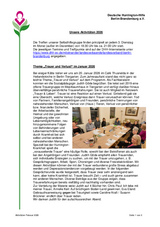 Andreas Schmidt berichtete, dass er in die Heilandskirche zu einem „Abendgottesdienst Kultur“ mit der Pfarrerin Jutta Pfannkuch eingeladen wurde und in der letzten Woche eine Kanzelrede zum Thema „Hauptsache gesund?“ gehalten hat. Dabei hat er in Form einer Gastpredigt über Seltene Erkrankungen im Allgemeinen und die Huntington-Krankheit im Speziellen informiert und zu einer offensiven Herangehensweise mit Problemen und Erkrankungen aufgerufen.
